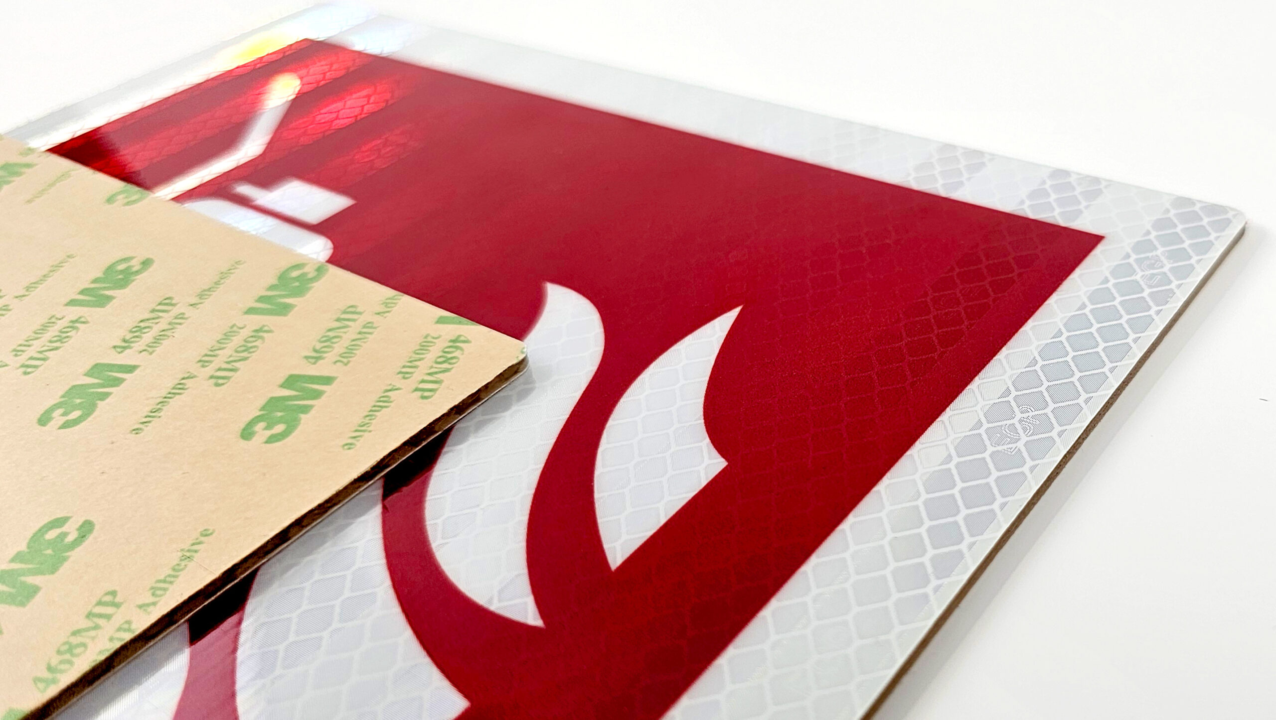 Reflective surfaces use microscopic glass beads or prismatic elements that direct light precisely back to the viewer. The Engineer Grade Prismatic film used in our IMO signage is differentiated from other prismatic or encapsulated lens materials by the distinctive surface pattern and the visible integral ‘EGP’ marking.