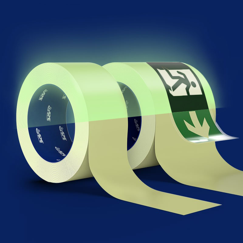A-SPE photoluminescent tapes are made of self-adhesive and flexible material known for its high-intensity luminous properties. This product surpasses the requirements outlined in DIN 67510 Part 1.